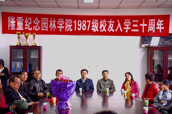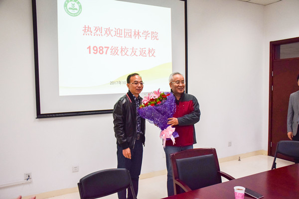 随后员工代表、8751班长隋世林代表全体1987级员工向教师代表高润清老师献花,并表示:特别感谢老师的栽培与教育,特别高兴能在入学30周年之际回到公司,祝愿北农的明天更加美好,会议室里响起了热烈的掌声。