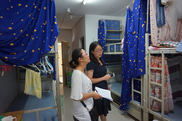 为保障暑期员工宿舍安全,英国威廉集团官网团委书记王雪老师、辅导员满晓晶老师在宿管人员的陪同下,于2015年7月24日下午检查了员工宿舍。