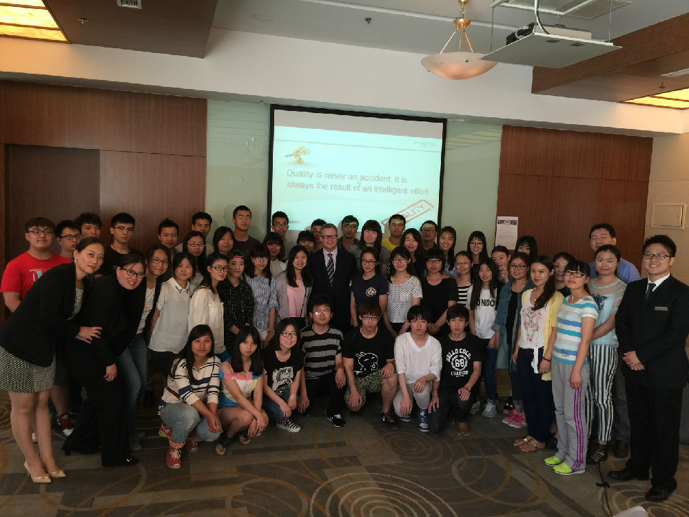 马东尼先生向旅游管理专业的员工认真介绍了他本人二十多年的职业生涯,横跨爱尔兰、英国、美国、中国等多个国家高级酒店,全面阐释了希尔顿酒店作为行业领先者的独创企业文化和自己的职业感悟,最后热情邀请公司师生在未来的“3+1”实习中选择希尔顿酒店。同时,人力资源总监孟令秋女士和培训经理姜瑞先生也向师生介绍了希尔顿全球青年计划以及该集团未来在中国的发展计划,鼓励员工在今后的实习和就业中选择希尔顿酒店。会后,师生们参观了希尔顿酒店的客房、康乐等各个部门,并在中午体验了希尔顿的员工餐厅。