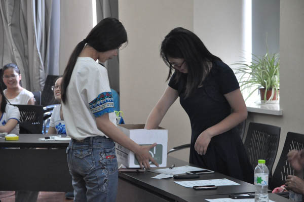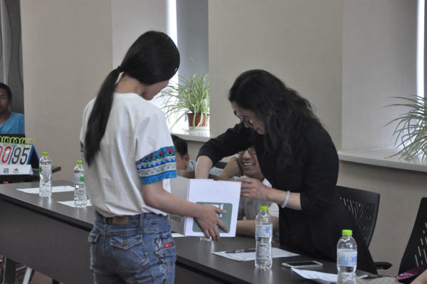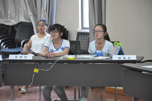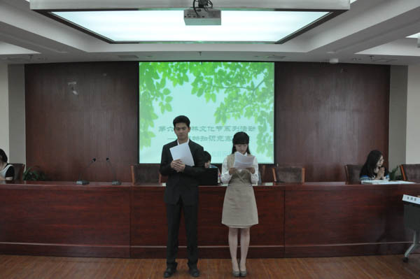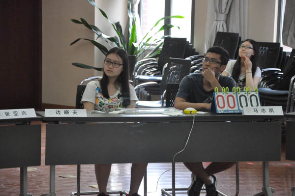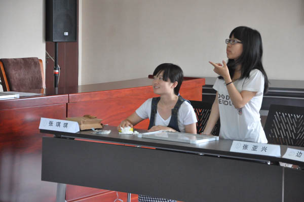当然,在紧张的比赛中,也有令人放松、开心的衔接。每个环节后的抽奖环节最终为六位现场观众赠送出了精心准备的幸运礼品。最后一环节之后,在后台工作人员认真并迅速地统计着比分时,由杨玉玲同学带给大家的一首歌曲《Youbelong with me》使得比赛紧张的氛围舒缓了许多,也承接了随后的颁奖环节。比赛的最终成绩为,一等奖:第一组的张亚兴、张琪琪;二等奖:第三组的程萌杰、余林花,第四组的魏富军、钟友超;三等奖:第六组的杜玥霞、李秋燕,第五组的李建一、许蓉,第二组的马志凯、边晓天。