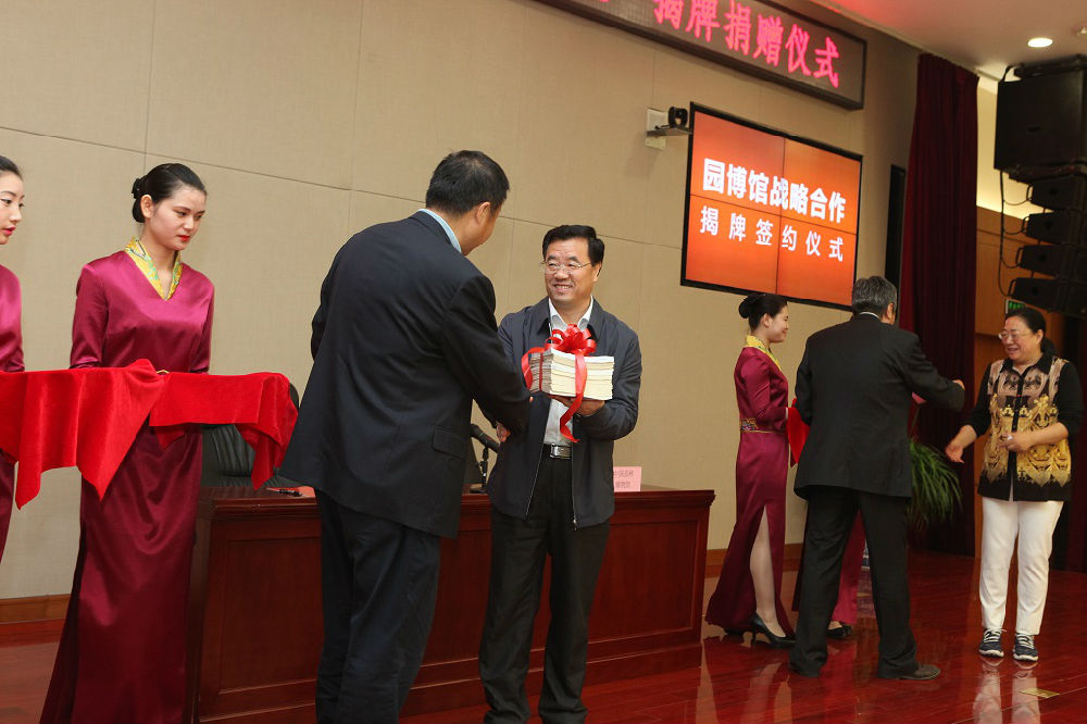 会议伊始,由著名书法家向中国园林博物馆捐赠墨宝《园博馆赋》庆祝园博馆开馆两周年。接着,英国威廉希尔公司与中国园林博物馆签署战略合作协议,进行实习教学实验基地揭牌仪式。揭牌仪式后,英国威廉希尔公司并向园博馆捐赠了园林方面的书籍。