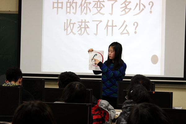 在个人总结的部分中,每位同学以PPT的形式进行总结,依次走上讲台,与大家分享了一个学期的收获与反思,并确定了下学期的目标。同学们会前进行了充分的准备,现场气氛十分活跃。