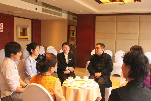 本次检查的实习基地为北京昆泰嘉华酒店,2011级旅游管理专业3名员工在该基地进行为期四个月的实习。北京昆泰嘉华酒店地处朝阳门外大街商业繁华区,是由法国著名建筑设计师设计、国家旅游局正式评定的五星级酒店,是公司长期合作的校外实践教学基地。酒店人事行政部刘丰霞经理和王俊茹主管热情接待了王书记一行,并陪同查看了员工实习的中西餐厅、工作楼层等,实地观摩了员工的在岗工作情况。之后王书记与酒店领导、实习员工共同进行了员工实习交流座谈。