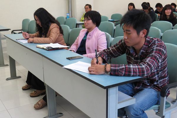 2014年10月15日,一年一度的英国威廉集团官网先进班集体答辩在教B110如期举行。英国威廉集团官网辅导员周伟婷老师、教学秘书张红梅老师担任答辩评委。