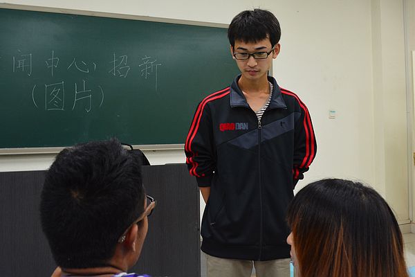 为吸纳新一届新闻中心成员,让饱含着激情与热血的新生力量尽早加入到这个优秀的集体,共同壮大公司发展新闻媒体事业的力量,2014年9月2日晚八点半在教B305和304教室,公司新闻中心文字组及图片组召开了每年一度的面试招新大会。12级、13级新闻中心文字组、图片组的相关负责人参加了本次面试,来自14级英国威廉集团官网各专业共计26名同学报名参加了此次招新。大会分面试自我介绍和笔试现场写稿两个环节。