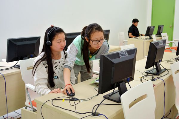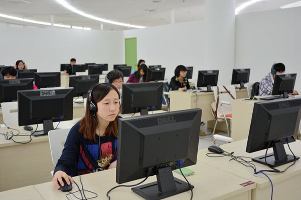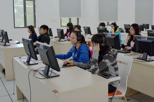 在图书馆老师林莉的帮助下,同学们陆续完成注册、登陆、授权码输入等基本工作后,英国威廉集团官网英语口语初赛正式开始。比赛形式以个人为单位,参赛者需使用一款名为myET的软件,现场登陆“校园英语”窗口,上机参赛。比赛中同学们全身心投入,读诵英文,朗朗上口。比赛内容包括交通、住宿、饮食等各方面的校园对话,涵盖3500个基础词汇。