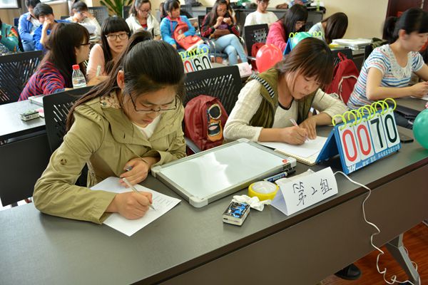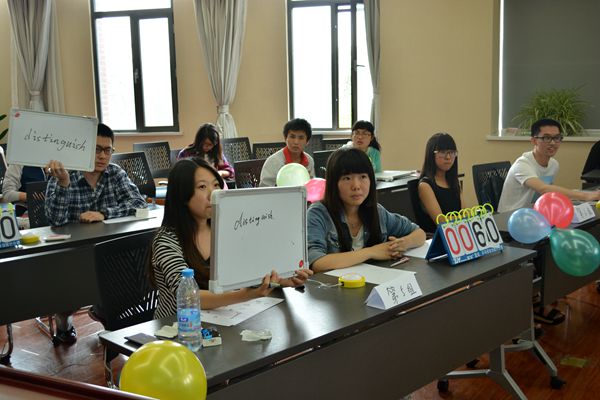 本次大赛分必答题,抢答题,选答题和综合题共四个环节。第一环节的单词选填,和第二环节的读句猜词把现场气氛推向高潮,在场观众都屏息凝神,关注着大家分数的实时变化。第三环节的词语分类记忆,含盖校园,医疗,植物,学术等九大类。在有限的时间内,在各个老师的公正批阅下,大家凭借着记忆力一决高下。同学们热情投入,沉着冷静,积极应对挑战,现场气氛紧张而有序。而第四环节的你说我猜,参赛选手通过肢体语言和英文描述向自己的队友表达词汇本意,他们全力以赴发挥自己的能力,争取获得最好的成绩,以精彩的表演向大家展示了一场优秀的比赛。在杨玉玲同学为大家倾情献唱英文歌曲“You belong with me"短暂休息后,李正玉老师和辛艳老师各自用简短的英文表达了自己对此次比赛的看法,满晓晶,王雪,李金苹老师也积极赞扬了此次比赛的举办。最终大赛的一等奖,二等奖,三等奖,和优秀奖也分别花落六家。
