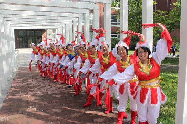 团队的每个成员对练习舞蹈充满了极大的热忱和责任感,他们利用每一个中午在老员工活动中心训练。从3月初开始,每天中午的十二点到一点半,即便有的老师上午刚刚上完最后一节课,甚至中午都没有来得及吃午饭,就准时赶来排练,排练完又要急急地赶去上下午第一节课。但没有人抱怨,更没有人后悔当初“揭榜”的选择。