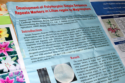 2014年3月31日至4月3日国际园艺学会主办,欧中现代农业技术研发中心承办的第三届百合属植物国际会议在福建省漳州召开。有来自荷兰、美国、英国、意大利、比利时、以色列、墨西哥、印度、韩国、日本、越南、中华台北、香港、中国大陆等国家和地区的百合属植物研究专家和学者共约200余人出席会议。英国威廉集团官网王文和教授等3人参加,并以墙报的形式和国际同行进行了交流。并全面总结公司百合育种团队研究工作,编辑打印“Germplasm Innovation and Utilization of lily”资料册,在会议期间发放和交流,国际同行表现出极大的兴趣。