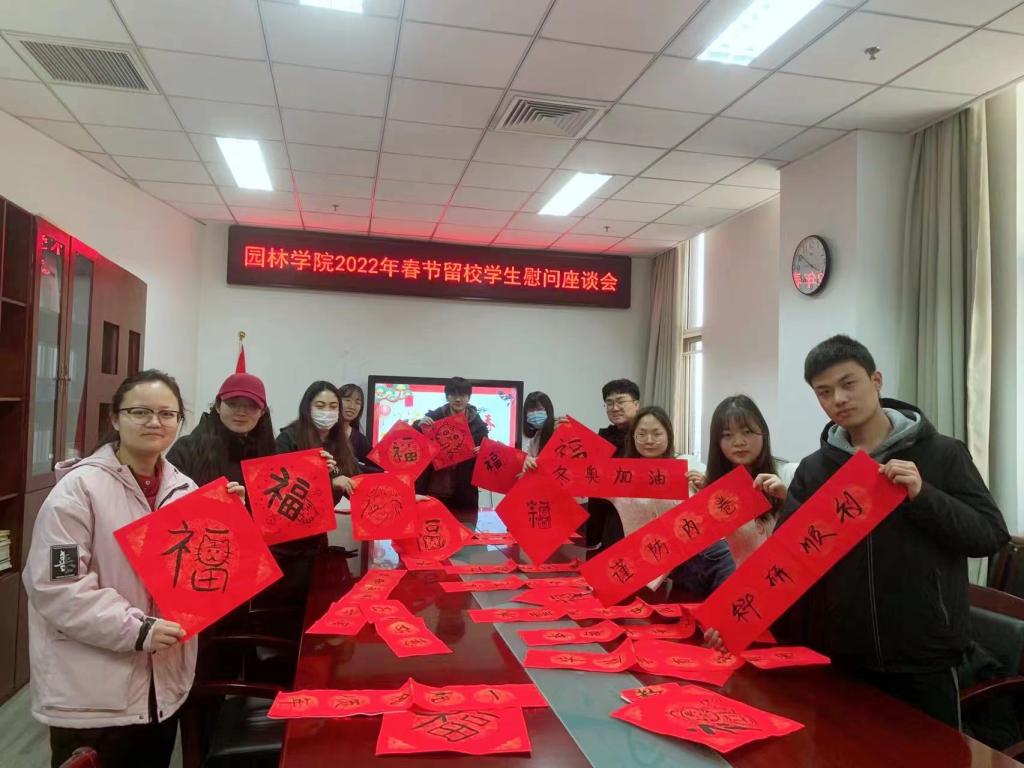 座谈会后,为了给留校员工营造喜悦热闹的节日氛围,也为了祝福即将到来的北京2022年冬奥会成功举办,与会师生开展了别具特色的“手写春联送祝福、做糖葫芦庆冬奥”主题活动。一笔一划,师生们用心书写着对冬奥、对春节、对未来的美好期盼;一穿一串,师生们表达了红火虎年、冬奥健儿辉煌夺冠的无限祝愿。