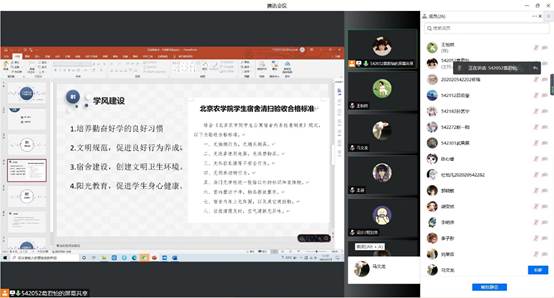 班会上,班主任重点强调要落实“五早”,即“早睡、早起、早锻炼、早饭、早自习”,珍惜学习机会,端正学习态度,明确学习目标,合理规划时间,养成良好习惯,期待同学们以暂新的面貌共同相聚在焕然一新的北农校园。员工们也纷纷表示,一定会更加严格地要求自己,遵守课堂纪律,做到互帮互学,积极进取,积极参加学术科技文化活动,严格遵守校纪校规,杜绝考试舞弊及其它违纪现象。