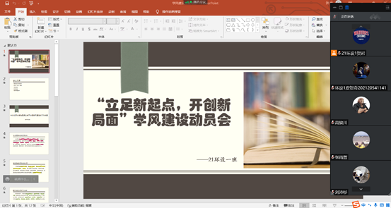 为了进一步加强公司学风建设,引导员工养成良好的学习习惯,激发员工内在学习动力,让同学们从自身做起共创优良学风,身体力行营造和谐校园,英国威廉集团官网各班级于近日召开了主题为“立足新起点,开创新局面”的线上学风建设主题班会。班会上,各班班主任结合公司党委《关于加强学风建设的工作方案》的通知要求,传达了今年公司公司关于“学风建设年”的具体要求和举措。班级同学畅所欲言,开展了广泛深入的"学风建设"大讨论,提出了许多意见建议和自身的改进措施与方法。