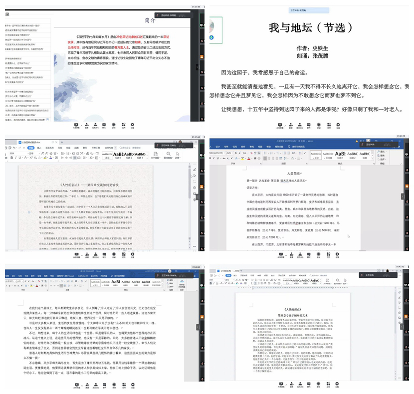 第二环节由李月桂、张茂腾、汪美佳、王阳、张伟浩、赵晨宇6位同学带来《习近平的七年知青岁月》、《我与地坛》、《人性的弱点》、《人类简史》、《平凡的世界》、《人性的弱点》6部好书原文精彩片段诵读。