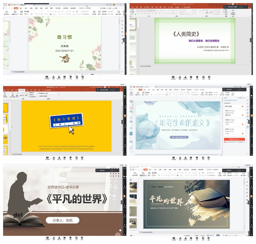本期活动的第一环节由徐美晨、刘琮锴、张啸、尹梦华、张凯、王浩祥6位同学为我们分享了《微习惯》、《人类简史》、《精力管理》、《追寻生命的意义》、《平凡的世界》5部著作,就自己的阅读感悟与大家进行讨论。