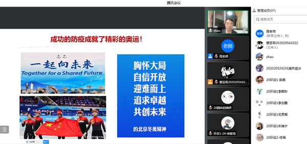 赵锋的“大思政课”在同学们中引起共鸣、引发热议。环境设计专业的李思怡同学说:“听了赵书记的思政大课令我们受益匪浅。没有一个冬天不会过去,没有一个春天不会到来,相信我们会很快战胜疫情,因为在我们身后,有14亿多团结一心的中国人,有一个强大党的领导和伟大的祖国!”闫景瑜同学说:“在全球疫情肆虐的情况下,中国不能也不会学习西方的“躺平”,这不符合中国的国情与现状,中国坚守“动态清零”方针,是最正确的、也是最科学的。”陈心睿同学说:“作为老员工,要带头遵守疫情防控政策和要求,在接种疫苗、核酸检测、健康打卡、志愿服务等各个方面发挥带头作用,做出自己的力所能及的贡献。我相信在党的领导和人民的团结下,中国一定可以交上完美的抗疫答卷”。张笑妍同学说:“我们虽然不能奔赴一线,但是要带头做到不给国家添麻烦,不给在一线奋斗的逆行者添麻烦。我们所做的一切都是希望疫情赶快离去,大家的积极配合在这场疫情歼灭战中发挥着巨大的作用”。徐恺迪同学说:“疫情改变了我们的学习和生活,老师们尽职尽责保证我们正常学习上课,我们一定会遵守国家的法律法规和疫情防控规定,遵守公司防疫要求,我们一定能克服困难,战胜疫情。”孙超然同学说:“病毒无情,人间有爱,相信在中国共产党的坚强领导下,在社会各界以及全体人民的共同努力下,我们终会抗疫成功,在阳光下重逢。”