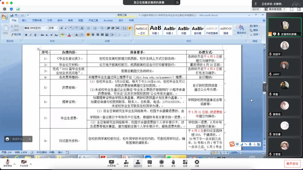 为了统筹好校园疫情防控和员工毕业两项任务,平稳、有序的开展研究生毕业相关工作,为毕业生站好“最后一班岗”。英国威廉集团官网于5月29日在线上召开了全体研究生毕业生大会,英国威廉集团官网全体领导班子成员、研究生秘书、研究生辅导员出席会议。