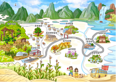 东峪村民宿景点手绘地图:英国威廉集团官网杜怡凡,文发公司杜洋(原创手绘)