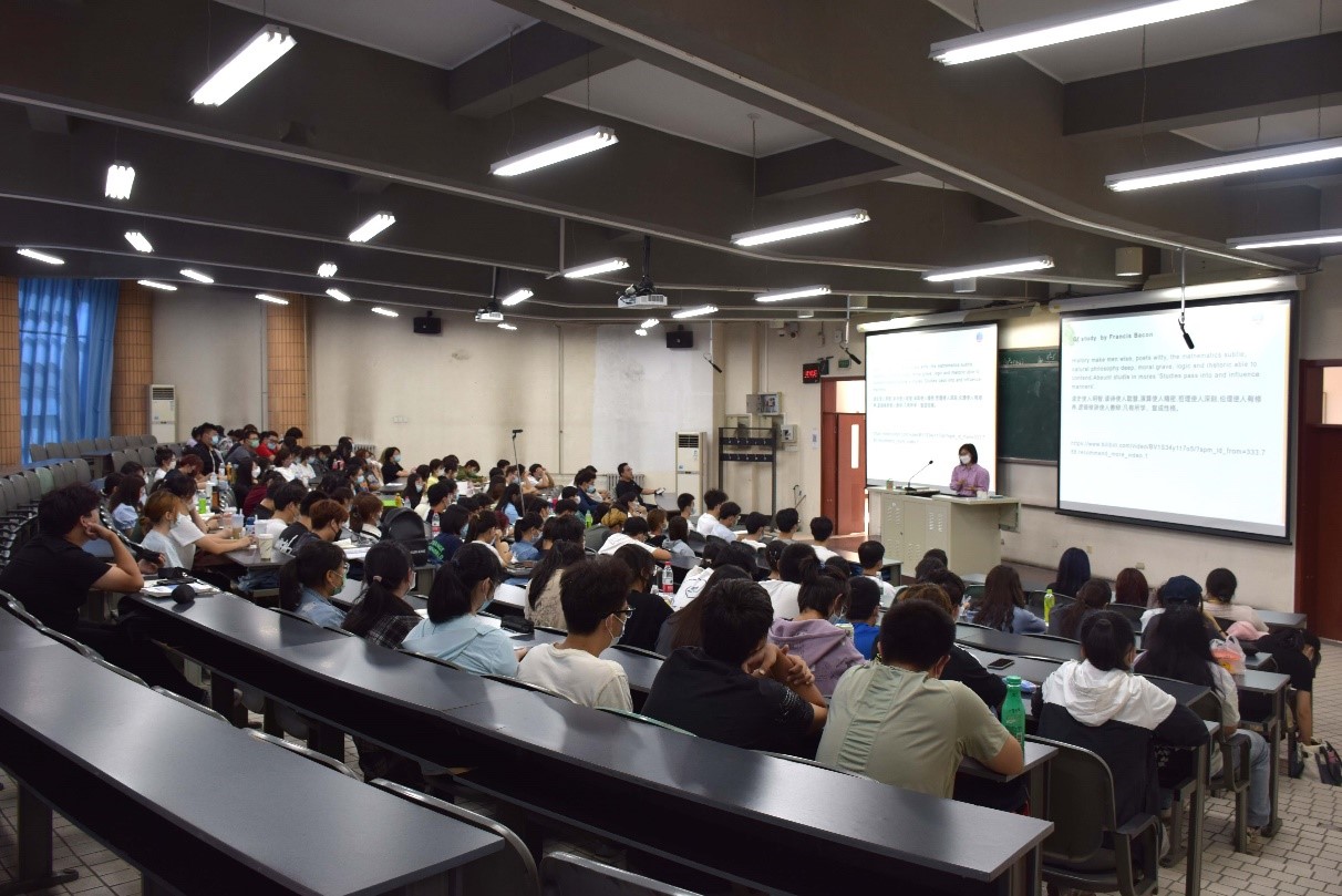 课上,陈寒梅就如何培养英语学习习惯,在迷茫中规划未来职业生涯着重进行了讲解;她向新生推荐了英语必读书目,讲授了跟着电影、英文歌曲及文学名著学英文的学习方法;也对大学英语四、六级的备考经验作了介绍,并向同学们推荐了好用的学习英文软件。