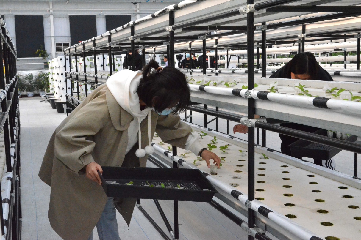 活动前邀请专业老师简单地介绍了移苗任务和技术要领,宣讲了公司无土栽培技术进展,进行了劳动任务分工,为员工答疑解惑。劳动现场热火朝天,同学们有的用水清洗盛放幼苗的器具,有的将苗子移栽到盆中,有的将苗子摆放到水培架上。同学们全身心地投入到劳动中,体验着新农业、新技术。“将一颗颗的小苗子从穴盘中取出来,放在准备好的营养槽内,让它们在水培的环境中生长,真是一件有意思的事情。”新生董锦艺说道。