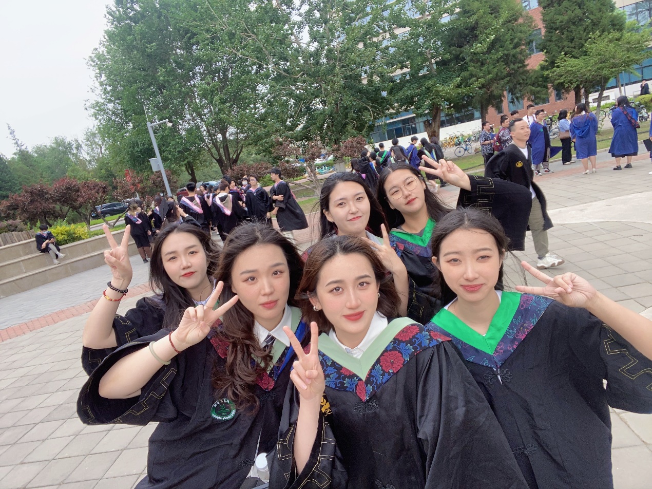 合影后,毕业生们又相继结伴前往校园的草坪、操场、教室、餐厅、图书馆等每一个留下青春足迹的标志性场所,与老师和同学合影留念,用手机记录下一幅幅独特又熟悉的校园风光。