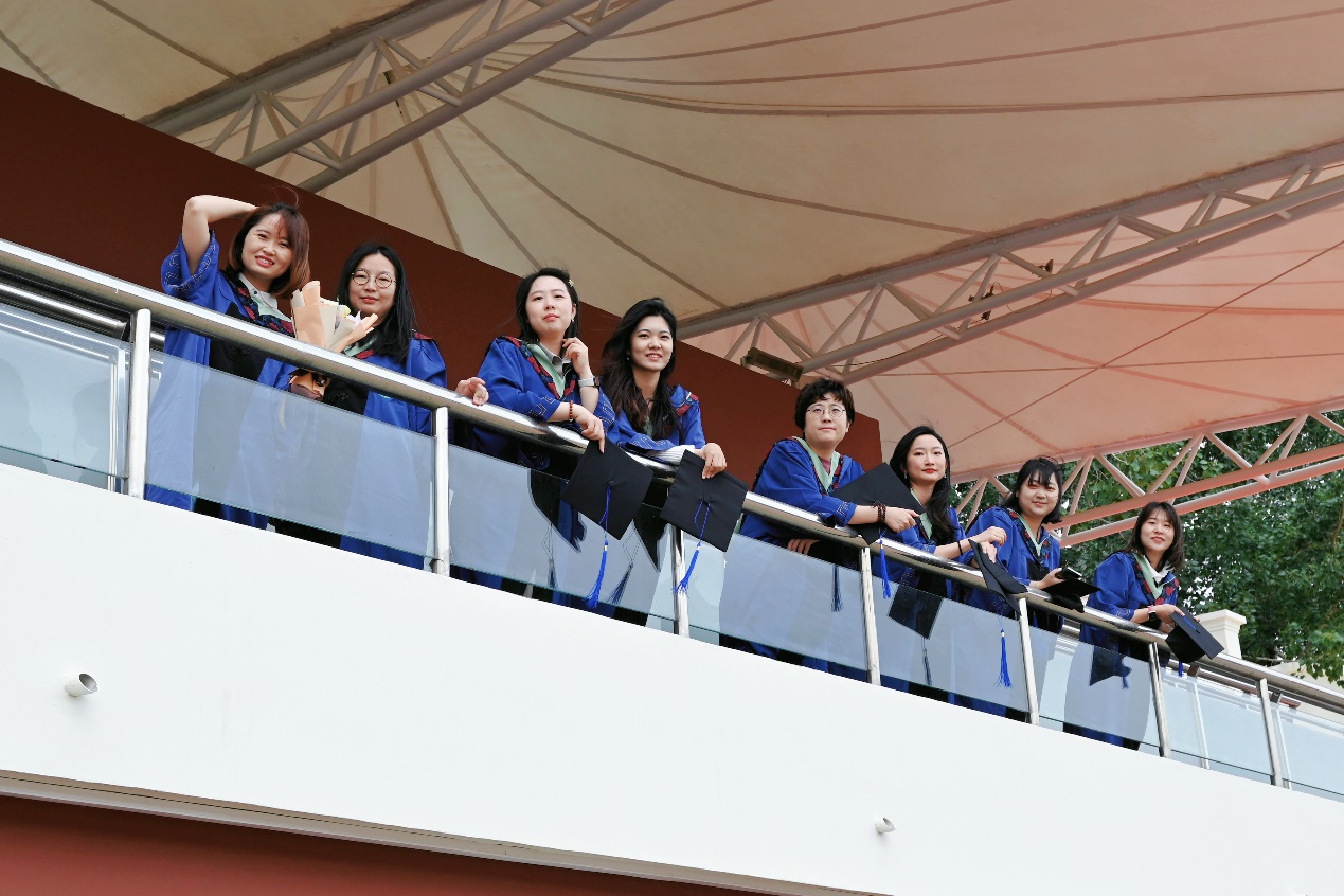 当清晨的第一缕阳光洒向校园,各班毕业生就早早来到园林楼领取学位服、相互整理衣装、互致问候等候拍照,脸上洋溢着青春灿烂的笑容。在志愿者的引领下,各班同学依次站上合照台,伴随着一声声快门声,时间和微笑同步定格在难忘时刻,为镜头前的他(她)们留下最美好的青春记忆。拍摄过程秩序井然、气氛温馨热烈,毕业生亲友团、学弟学妹到场为毕业生送上毕业祝福。拍摄结束后,毕业生用热烈的掌声向校领导和恩师表达了感激之情,并纷纷表示毕业后将继续努力、奋勇前进,以优异的成绩回报母校。
