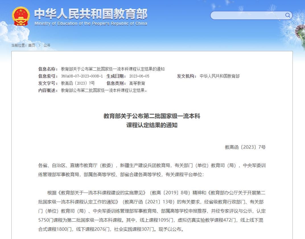 近日,在主题教育深入开展之际,教育部公布了第二批国家级一流本科课程认定结果,公司王文和教授主讲的《植物学》获评线下一流课程。