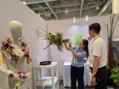 由人力资源社会保障部和中国残联共同主办的2023年全国行业职业技能竞赛——第七届全国残疾人职业技能大赛暨第四届全国残疾人展能节于6月27日至29日在山东济南举行。来自全国32个代表团的950名选手参赛,规模创历届新高。本届赛事以“新时代、新技能、新梦想”为主题,是国家级一类职业技能竞赛。插花项目竞赛共3个模块——传统盘花、架构花束和花首饰。与往届相比,增加了传统插花内容和技巧性强的花首饰项目。共有来自全国的41位选手参加了该项目竞赛。