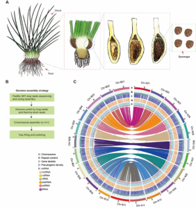 中华水韭(Isoetes sinensis)被认为是植物界的大熊猫,是我国首批公布的I级重点保护野生植物名,同时也是中国特有石松类植物。在所有维管植物类群中,石松类植物的进化史最长,对地球的生物多样性、土壤形成和二氧化碳固定有着重要的影响。然而,与种子植物相比,石松植物的分布面积大大缩小,石松属的几个物种已经濒临灭绝。中华水韭是古老的四倍体(2n = 4x = 44)水生石松植物。中华水韭曾经广泛分布,但现在已经从大部分栖息地消失了。中华水韭的基因组图谱的绘制,对深入理解石松植物的进化及环境适应性,以及对中华水韭的保护有着重要意义。