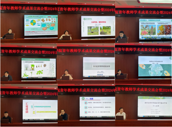 在成果交流会环节,2023年科研成果突出的青年教师代表胡增辉、陈盼飞、王文波、崔金腾、杨丽婧、冯丽、王亚英、田晔林、张炎共9位老师分别在国家基金申请、论文写作、社会服务团队、新品种权授权等几方面进行经验交流,分享自己取得的研究成果。