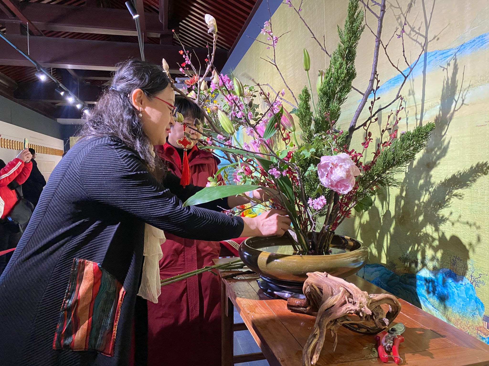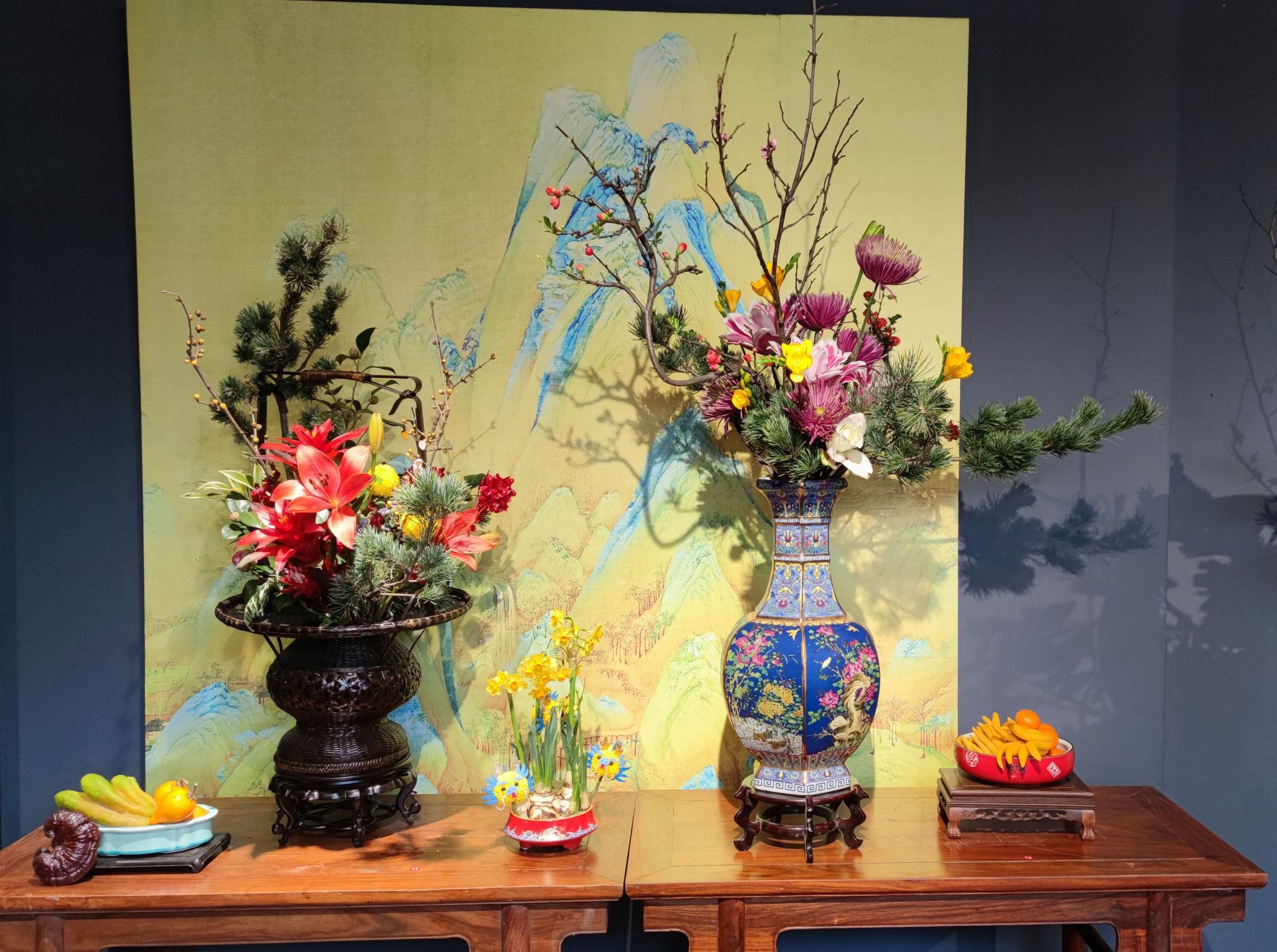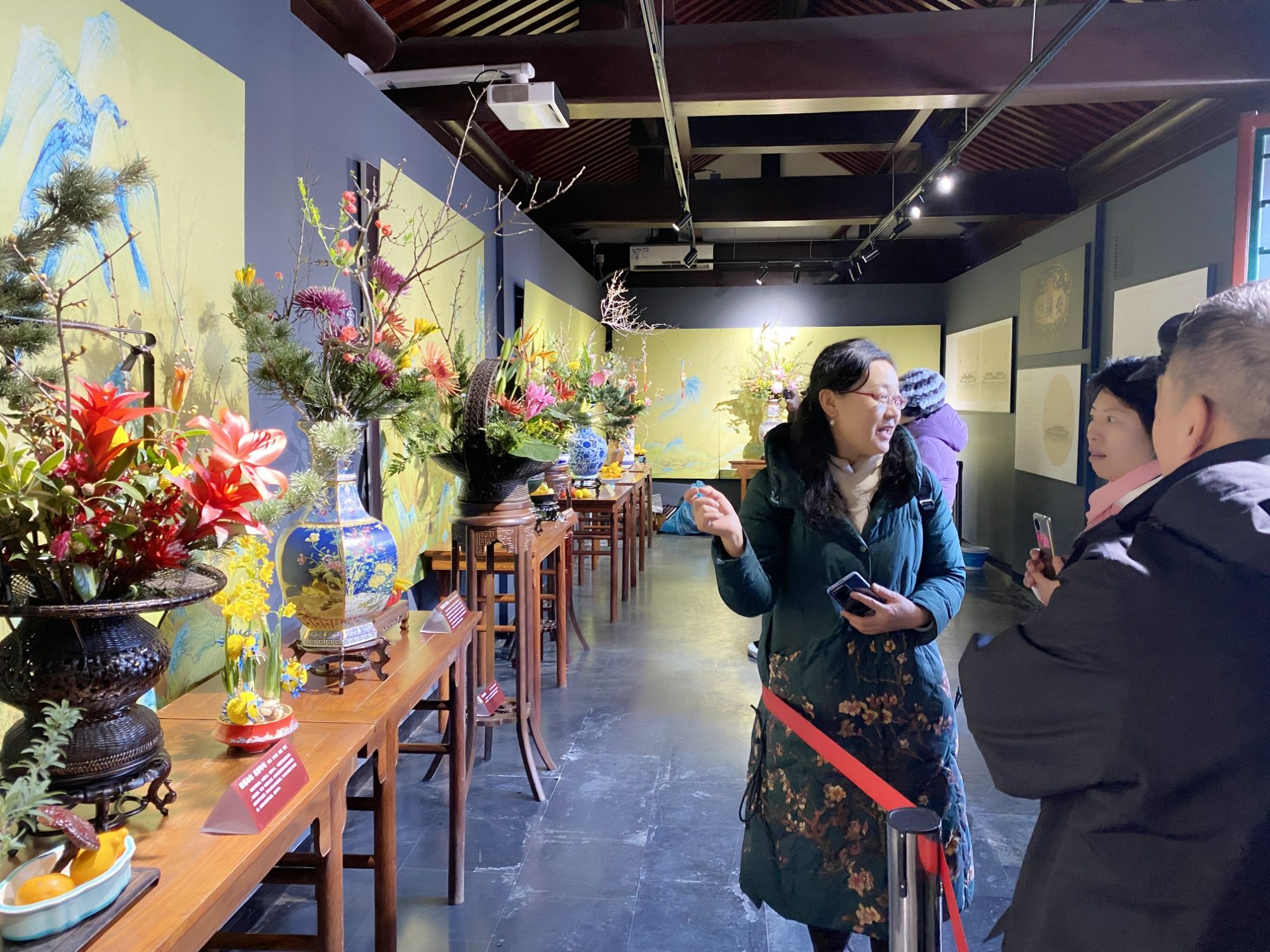 侯芳梅副教授作为国家级非物质文化遗产“传统插花”传承团队的成员,参与了本次岁朝插花——大师作品创作、赛事评委和传统插花宣传普及工作。