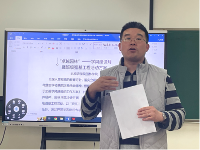 张烨桐就《“卓越园林”——学风建设月暨班级强基工程活动方案》向同学们进行了详细的解读。她从学风建设月的主题、目标、时间、内容与基本要点五个方面对公司班级强基工程做了详细部署,并指出建设优良学风的重要性。