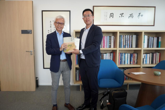 除了参加特展开幕式,朱强老师还在香港故宫文化博物馆与馆长吴志华博士、策展人杨煦副研究员以及资深讲解员王老师进行了深入交流,并代表公司赠送馆方一套学术代表作——《今日宜逛园——图解皇家园林美学与生活》及其英文版Touring the Three Hills and Five Gardens—Landscape, Art and Life of Chinese Imperial Gardens。他们在浓厚的历史与艺术氛围中,就博物馆建筑设计、文物策展思路以及展陈形式等议题进行了深入讨论,以期更好地传承并面向世界弘扬中华文明,也为双方今后更多合作搭建良好的基础。