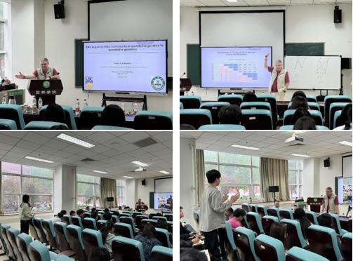 Yousry El-Kassaby教授作了题为《DNA sequence data: transition from quantitative genetics to quantitative genomics》的学术报告,并与参会同学们展开深入的交流讨论,为同学们详细、耐心的答疑解惑,进行学术指导。