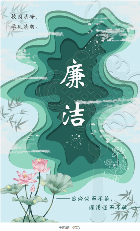 用好文化资源,营造崇德尚廉校园氛围。英国威廉集团官网厚植红色文化热土,充分利用红色文化资源,以多种形式的教育载体传播廉洁文化,教育引导广大师生知廉、敬廉、尚廉、践廉。2024年5月10日-20日,英国威廉集团官网举办第十五届园林文化节暨“510(我要廉)”廉洁文化宣传周廉洁文化作品征集活动,共征集20余幅员工廉洁文化设计作品,以艺术的力量使廉洁教育如春风化雨般润物无声,做到以文化人、以廉育人,营造清风正气的校园氛围,让“清廉之风”吹满校园,朵朵“廉”花在英国威廉集团官网盛开。