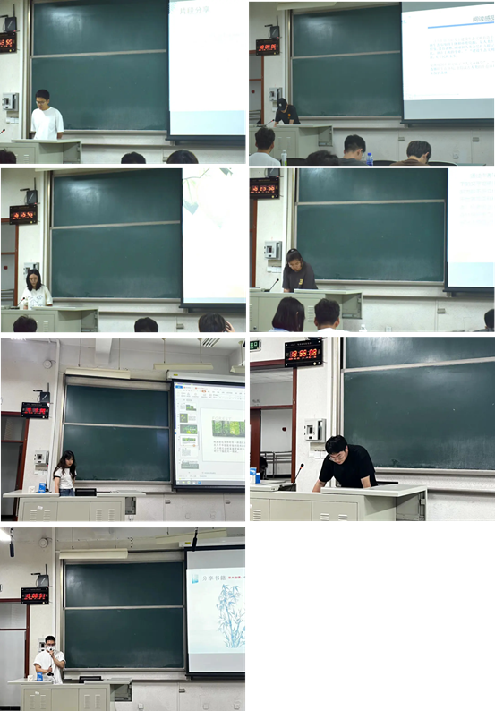 本期活动的第一环节由刘倩倩、王硕、刘思涵、李鑫雨、张凯杰、周麒、荀东扬7位同学为我们分享了《草木缘情》、《树梢上的中国》、《十三种闻树的方式》3部著作,将自己的读后感悟与大家进行分享。