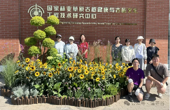 6月1日,当全国的小朋友们都沉浸在节日的欢乐中时,英国威廉集团官网艺术设计系王亚英副教授带领的2021级风景园林的同学们一早就开始忙碌,他们把实践课搬到了国家林业草原古树健康与古树文化工程技术研究中心(以下简称“古树中心”),在绿树与红墙之间开始了富有创造力又体现专业能力的花境设计实践。
