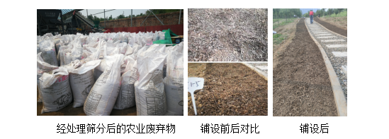 古城村公园道路边绿地铺设处理筛分后的农业废弃物前后对比