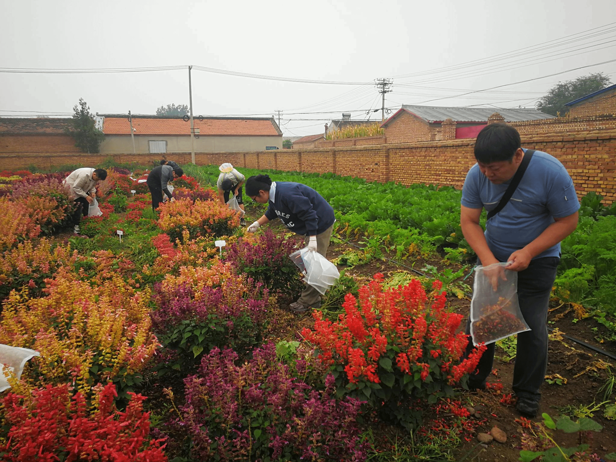 根据小院建设发展规划,2024年团队指导小院开展“园林绿化废弃物+蚯蚓粪”发酵专项试验进行基质化利用研究,开展了基质栽培试验、花卉繁育工作等内容。随着十一国庆节的临近,秋季的深入,小院部分工作也进入阶段性收尾、总结阶段。第二次发酵试验即将结束,发酵效果好,负责此项工作的研究生张向杰对发酵物进行了现场观测,取样,留待后期理化性质等测定。贾文、郭宇宏观测了不同配比基质的大棚地栽、盆栽效果,看着植物喜人的长势和挂着的果实,小院新产品的问世又近了一步。最后,师生们对小院大田种植区的花卉进行观测、优株选择和种子采收工作。两位指导教师充发挥专业知识和技能,调查植株生长情况,了解小院有机肥和基质产品栽培花卉的效果,向员工和师傅们亲自示范如何正确地采收种子,讲解花卉露地种植管理技术,讲解由课题组培育在小院栽培的应用于国庆长安街花坛的花卉新品种育种过程和技术。农田里,师生们干劲足,即使细雨濛濛,也未停歇。为避免第二天下雨无法工作,在夜幕降临时,大家借助手机手电筒进行抢工。