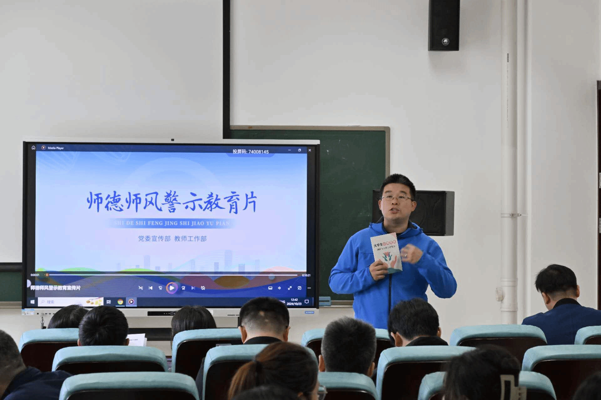 会上还播放了教育部网站公开曝光的师德失范行为警示案例宣传片,引导全体教职工以案为鉴,做到警钟长鸣、举一反三。