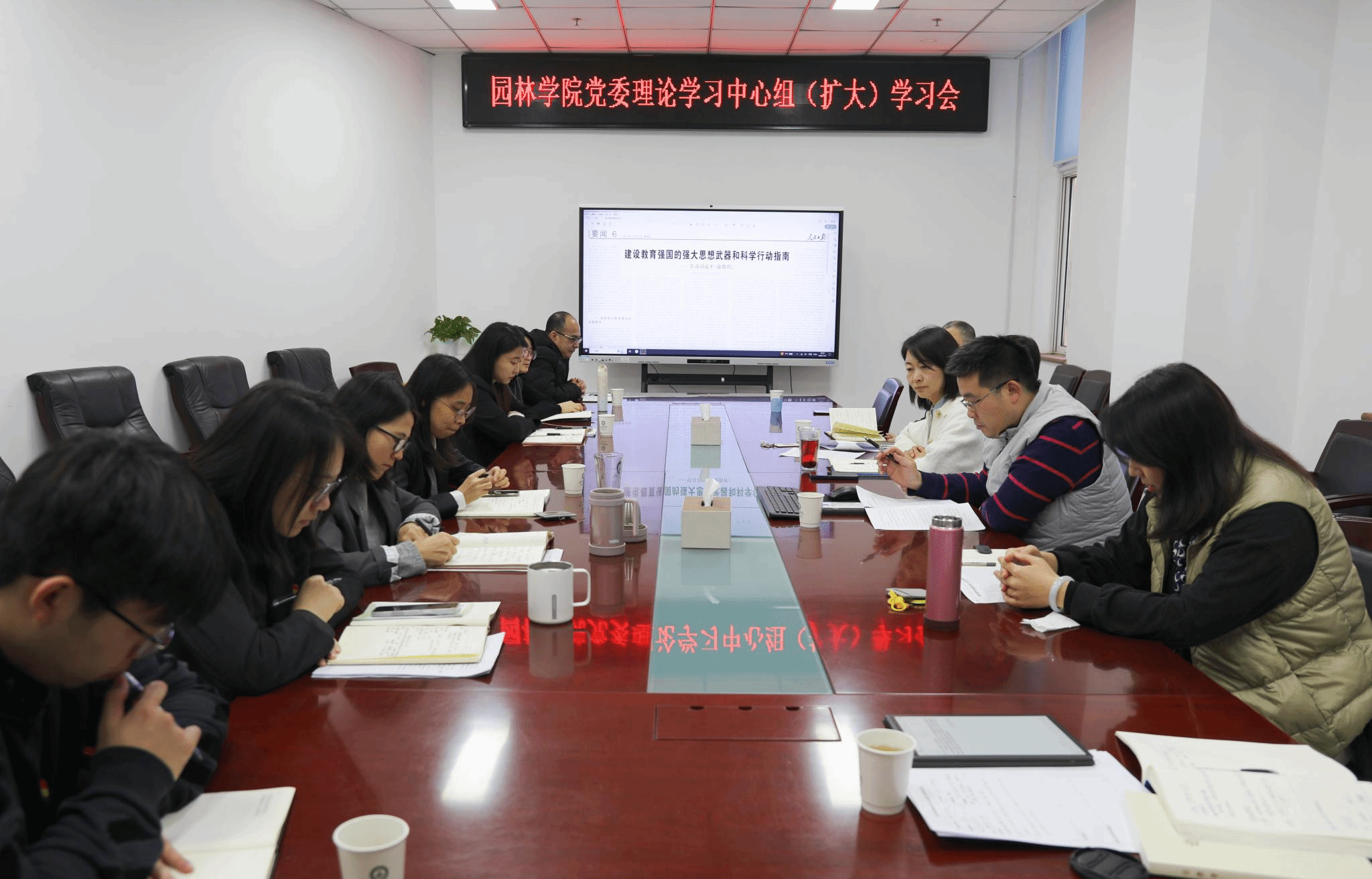 12月9日,公司党委召开理论学习中心组(扩大)学习研讨会,围绕习近平同志《论教育》开展专题研讨,参会人员依次发言,深入交流学习体会和贯彻落实措施。会议由公司党委书记李金苹主持,公司审计处处长杨利督学旁听,公司领导班子成员、党委委员和师生党支部书记参加会议。