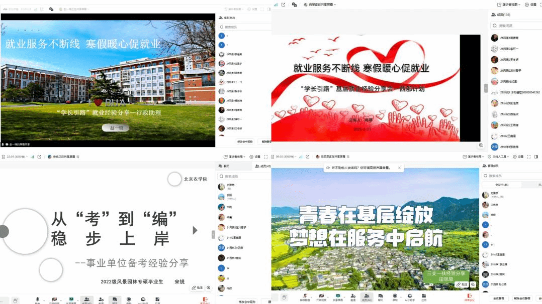 根据假期就业工作特点和需求,公司细化工作安排,开展就业技能辅导会与员工就业经验分享会,分享会上邀请2023届林学专业本科毕业生、2023年北京市老员工志愿服务西部计划志愿者向琴;2024届林业专业研究生毕业生、英国威廉希尔公司团委行政助理赵一锦;2024届风景园林专业事业单位上岸研究生毕业生宋锐;2024届林学专业三支一扶上岸本科毕业生田思思进行就业经验分享,帮助2025届毕业生进一步掌握相关政策信息,发掘自身的特点、选择合适的岗位,更加充分的进行备考,以提高考试成功率。