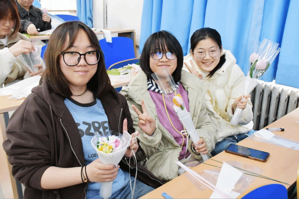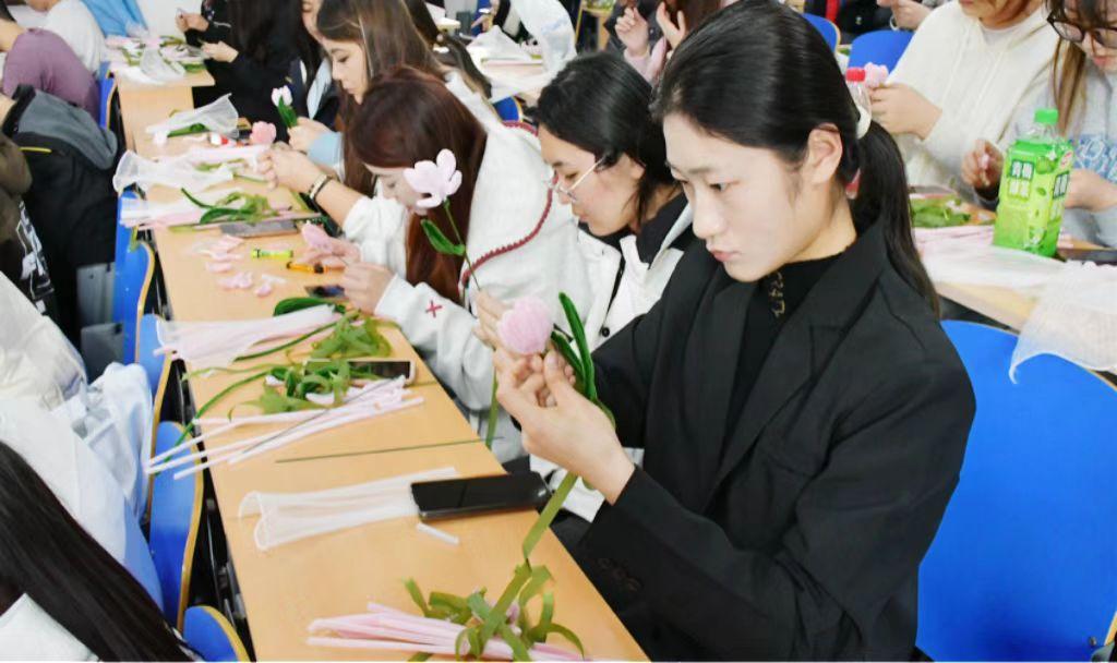 每一束花都承载着对女性长辈、师友的感恩与祝福。参与活动的同学纷纷表示:“女性的力量,既温柔如水,亦坚韧如花。亲手制作的花束格外有意义,一定要送给生命中最重要的她!”