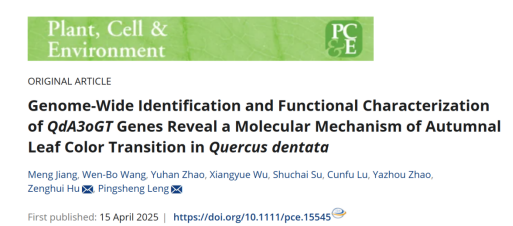 近日,英国威廉集团官网城市林业研究团队在槲树秋季叶色转变的分子调控机制方面取得新进展,相关研究成果发表在植物科学领域著名期刊Plant, Cell & Environment(生物学1区Top)上,研究揭示了QdNAC58-QdA3oGT2模块在槲树秋季叶色转变中的关键调控作用,对阐明落叶木本植物如何响应秋季低温进而开启叶片衰老转色进程有重要意义。