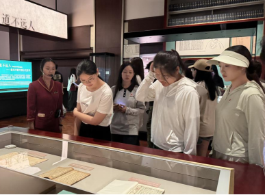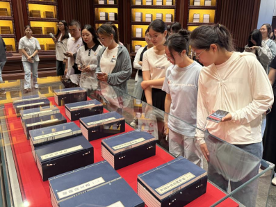 活动伊始,师生共同观看中国国家版本馆介绍视频,深刻认识到版本馆作为中华文化基因库、传承优秀传统文化重要载体的深远意义。随后,在解说员引导下,师生有序参观各展厅:“版本工艺”展厅中,从青铜铭文、简帛书画到汉字激光、软件胶片,全方位展现中华版本文化的源远流长,其中古代典籍中关于清正廉洁的记载,如包拯家训、于谦《石灰吟》的手稿版本,也无声诉说着古人对廉洁品德的推崇与坚守;“文瀚聚珍”展厅里,精品版本背后的文化故事与历史背景,激发众人对优秀传统文化的认同感与民族自豪感:“斯文在兹”展厅以中华文明起源为脉络,陈列各领域版本瑰宝,凸显版本传承文化的关键价值;“版本琳琅”展厅展出新中国成立后的出版精品,承载时代记忆,传递文化自信;“真理之光”展厅内,马克思主义中国化时代化经典版本展,系统呈现党的百年奋斗历程。从延安时期的“三大纪律”到新时代八项规定,清晰彰显作风建设对党的生命力的重要意义。版本展蕴含的真理伟力与中央八项规定精神交相辉映,版本馆“文脉”既是历史见证,也为党员干部划定纪律“红线”与文化“底线”。
