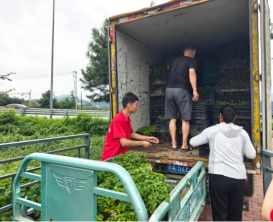 同学们迅速而有序地分工起来,现场一片忙碌而和谐的景象。有的同学化身“大力士”,搬运着一箱箱花苗;有的同学则像温柔的呵护者,轻轻地将花苗从箱中拿起,然后小心翼翼地放入指定位置。这些花苗就像是一颗颗希望的种子,即将在这片土地上生根发芽,茁壮成长,最终绽放出绚烂夺目的花朵,为上宅村增添一抹最亮丽的色彩。