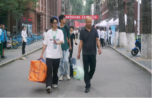 "林开新卷"象征着新生老员工涯的正式启航。9月5日下午,跟随着指引同学们来到了老员工活的第一站——宿舍,这个即将陪伴学子们度过四年时光的“家”,进入宿舍楼后志愿者们主动上前迎接新生,细心协助搬运行李,耐心指引报到路线。