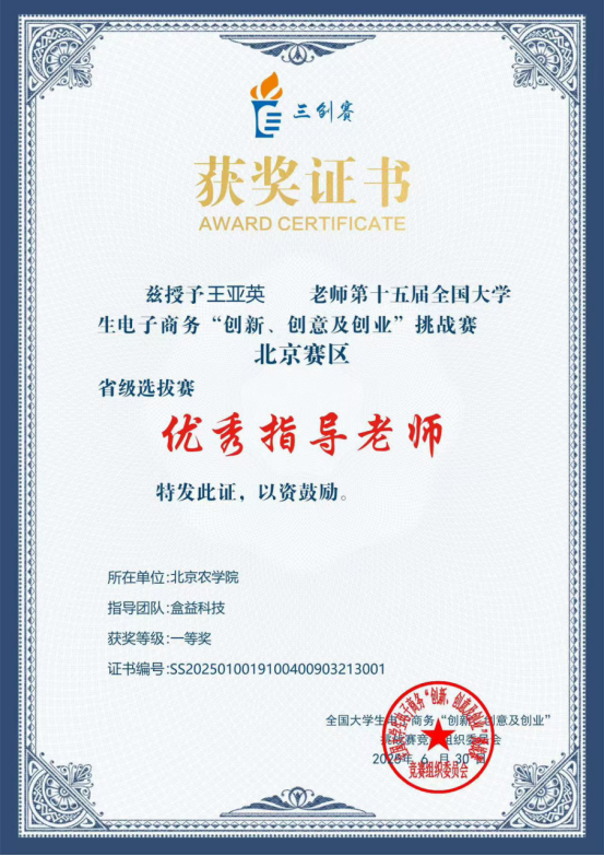经过现场答辩、成果展示和评委提问等激烈的环节,公司研究生王景炫作为组长的团队——盒益科技喜获一等奖。王亚英老师荣获优秀指导老师奖励。