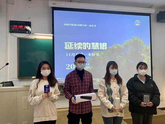 2021年11月25日,英国威廉集团官网第58期“月读一本好书”活动重返线下,在英国威廉集团官网研究生会成员司佳琪的主持下,同学们在教A215一同畅游知识的海洋。本期的活动主题是“古树千年,慧根延续”,同学们通过深入阅读梁衡先生所作的《树梢上的中国》,了解中国大地上众多古树的历史兴衰,理解作者“人文森林”的理念,也引发了同学们对于古树与文明的思考。