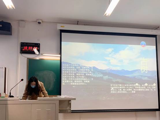 最后进行分享的是来自风景园林的刘欣然同学。她以《树梢上的中国》中记载的古树地图为始,为我们总结了这本书的特点。《树梢上的中国》标志着梁衡先生又一独特的散文创作。他总是喜欢走在文学的边缘去创新、猎奇。用老树作为素材讲故事,题材独有,视角新颖,文化内涵丰蕴。这本书的特点是,每篇文章记载的树,都附有精美的图片,好像这些树就在人眼前,仿佛一位饱经沧桑而慈祥的老人,轻轻摇晃着枝叶,显得那么亲切和蔼,伸手即可触摸。