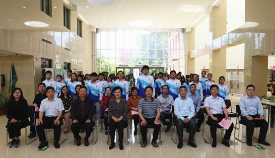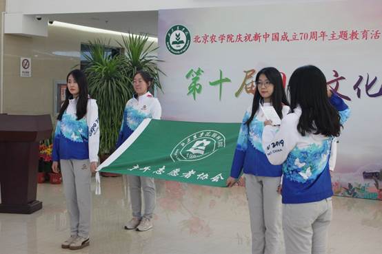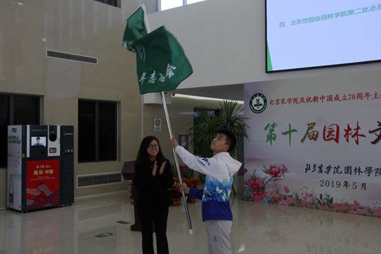 校团委副书记苑静娴向2019中国北京世界园艺博览会英国威廉集团官网第二批志愿者代表授旗,全体志愿者郑重宣誓。